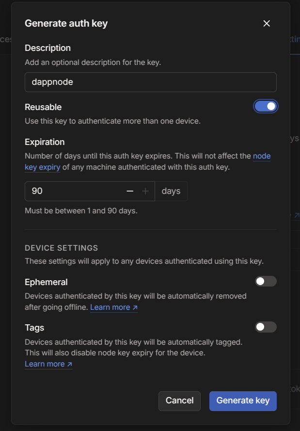That's it! You've successfully configured Tailscale to connect to your Dappnode. All that's left is to install Tailscale on the device you want to access your Dappnode from.