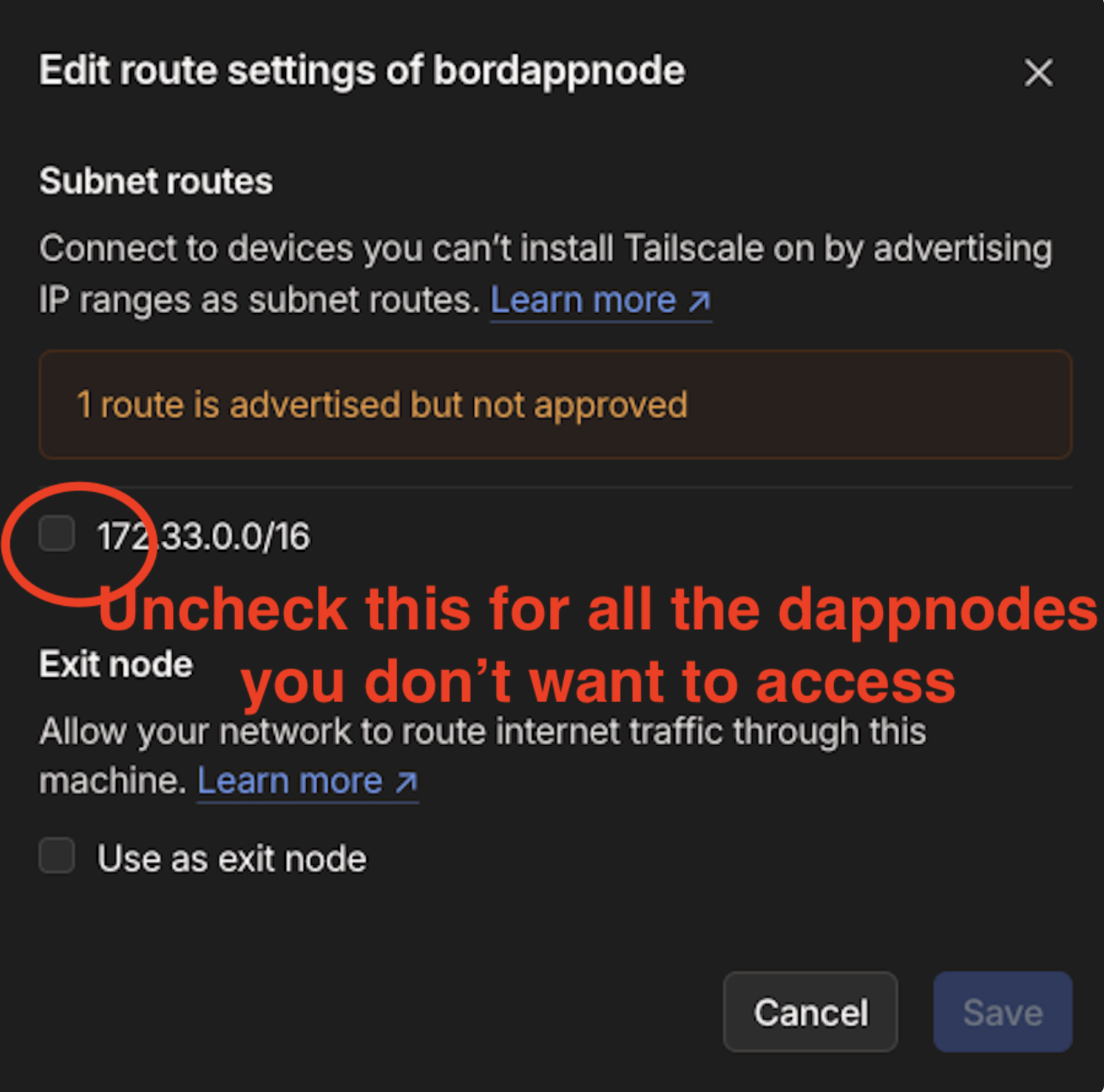 3. Configure Tailscale to Connect to Dappnode Internal Networks