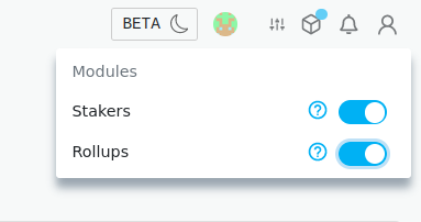 To enable this feature, you need to switch on the rollups module in the top bar of the Dappnode UI (Dappmanager):